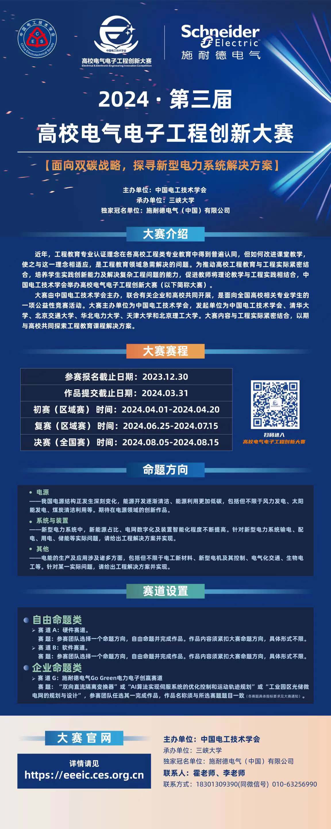 竞赛目的:大赛以“迎接双碳,实现新型电力系统解决方案”为主题,紧密结合工程技术前沿设置命题方向。激发学生的创造、创新和产业化设计能力,推动提升电气与电子产业降本增效和促进双碳目标的培养模式的开展,助力校企联合创新支撑平台的建设。